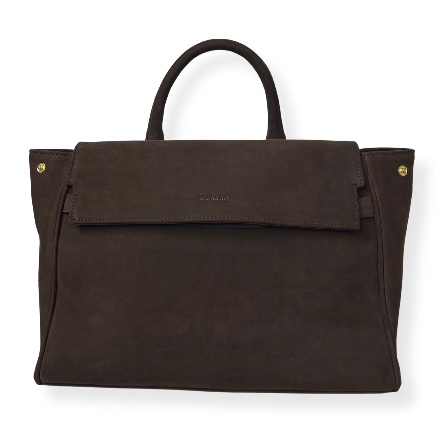 Élégant et fonctionnel, ce sac en cuir de vachette nubuck marron séduit par ses lignes épurées et son allure intemporelle. Confectionné avec soin, il est sublimé par des accessoires en laiton qui apportent une touche raffinée.